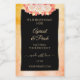 Make a lasting impression with this elegant and modern product label design featuring pretty roses and rose leaves on a frame with shimmering peach and coral marble pattern. Matching a fine gold frame on a black background.