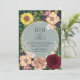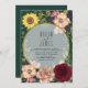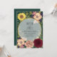 Elegant, modern, bold, boho, botanical, floral burgundy, peach pink and emerald green whimsical wildflowers wedding invitation with trendy calligraphy script.