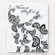 This design features an original illustration of a stylised boho black floral peacock with an elegant tail made up of paisley shapes decorated with flowers.