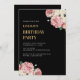Floral Peonies and Roses on Black Birthday Party Invitation