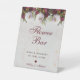 Floral Peonies Marble Elegant Script Flower Bar Pedestal Sign