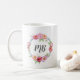 Floral peonies wreath watercolor Monogram mug