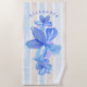 An understated and beautiful beach towel that evokes summer, sun and holidays. Vintage striped background with a large floral design in soft watercolor tones of blue, purple and lilac. Add your name or leave it without one if you wish. Feel free to contact us with any design and/or product requests.
