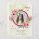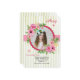 This beautiful, watercolor, round, photo frame with clusters of pink flowers and foliage is backed with a green and white stripe pattern. Perfect for a girl of any age. (<a href='http://www.freepik.com/free-vector/pretty-background-with-watercolor-flowers-for-mother-s-day_1102231.htm'>Designed by Freepik</a>). <br/><br/>The card is easy to customise with your wording, font, font colour, paper shape options and choice of six paper types.<br/><br/>Not exactly what you're looking for? All our products can be custom designed to meet your needs at no extra charge.<br/><br/>Simply contact us at askcottonlamb@gmail.com.<br/><br/>Coordinating products available: Just ask us!