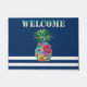 Floral Pineapple Nautical Navy Blue Striped Doormat