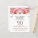 Girly glitter, millennial pink background, with fancy script name typography. Happy 90 and fabulous birthday design template. Pink Roses and butterfly top border. Great for 90th celebrations. Save the date celebration reminder.