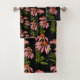 floral pink and black bath towel set