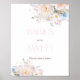 This design features delicate watercolor peonies and roses in a stunning palette of dusty blue, light pink, and white, creating a soft and elegant look for your “Baby in Bloom” baby shower.
