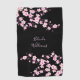 Pink cherry blossoms on a black background. For women who love flowers and floral Asian designs. Customise it with your name.