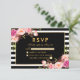 Floral Pink Blush Gold Black RSVP Wedding Card