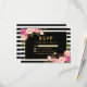 Watercolor Floral Pink Blush Gold and Black Striped Wedding RSVP Card - Gold Frame