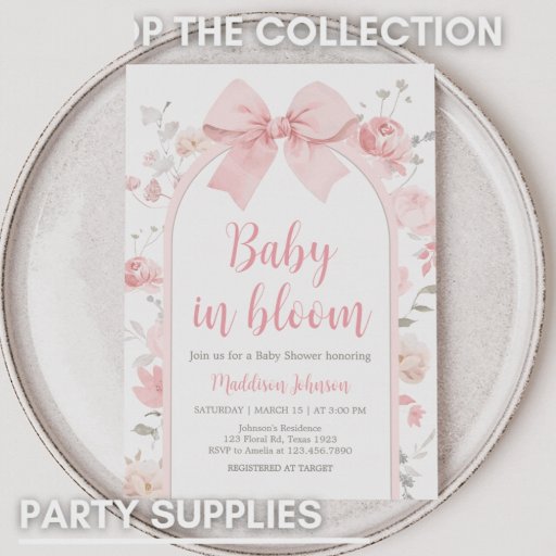 Floral Pink Bow Baby in Bloom Baby Shower Invitation