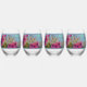 Floral/ Pink Flowers Muted background Stemless Wine Glass