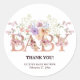 Floral Pink Glitters Baby Monogram Baby Shower Classic Round Sticker