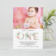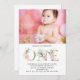 Floral Pink Gold Custom Photo 1st Birthday Party Invitation