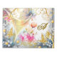 The design features a dreamscape design, a whimsical blend of pastel and watercolour flowers, gold magical birds, hot pink and gold legendary butterflies, gold pearls, and abstract art, all decorated with golden flourish decor elements, combined with beautiful mixed media collage to capture the visual interest.
