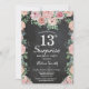 Floral Pink Peonies Surprise 13th Birthday Invitation for Girl. Watercolor Floral Flower. Elegant Pink Rose and Peony Flowers. Kids Birthday. Chalkboard Background. Black and White. 13th 15th 16th 18th 20th 21st 30th 40th 50th 60th 70th 80th 90th 100th, Any Ages. For further customisation, please click the "Customise it" button and use our design tool to modify this template.
