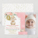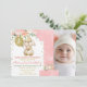 Floral Pink and Gold Photo Fluffy Bunny 1st Birthday Invitation