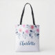 Floral Pink Roses Watercolor Personalised Name Tote Bag