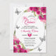 Floral Pink Silver Tiara Butterfly Mis Quinceañera Invitation