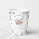 Modern floral girls some bunny themed first birthday paper cups featuring a floral arrangement, pink balloon and cute bunny rabbit.