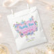 Elegant birthday party "Thank You" favour bag with pink, blue and violet watercolor flowers and green swirls framing a piece of parchment for your text. Cute, colourful, girly design, perfect for spring/summer floral themed birthday celebration.