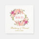 Floral Pink Wreath Gold Monogram Wedding Napkin