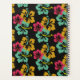 Hibiscus pattern tropical design with colourful flowers against a black background. This summer inspired graphic is inspiring to bring out your creative side and plan your best life.