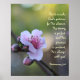 Floral Poster with Scripture Verse from Deuteronomy 31:6; Beautiful freshly bloomed peach blossom, on green/gold background with the sun shining through! and the following scripture verse: Don't mistake God's patience for his absence. His timing is perfect and His presence is constant. He's always with you.