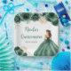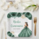 This Quinceanera plate features a beautiful princess in a dark green ball gown with floral arrangements. This is perfect for a sweet Quinceanera party.