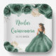 Floral Princess in Dark Green Dress Quinceanera Paper Plate