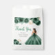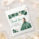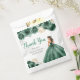 This sweet sixteen favor bag features a beautiful princess in a dark green ball gown with floral arrangements. This is perfect for a sweet sixteen birthday party.