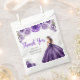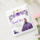 This quinceanera favor bag features a beautiful princess in a dark purple ball gown with floral arrangements. This is perfect for a quinceanera birthday party.