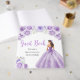 This quinceanera guest book features a beautiful princess in a dusty purple ball gown with floral arrangements. This is perfect for a quinceanera birthday party.