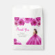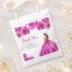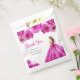 This sweet sixteen favor bag features a beautiful princess in a hot pink ball gown with floral arrangements. This is perfect for a sweet sixteen birthday party.