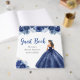 Floral Princess in Navy Blue Dress Sweet Sixteen Guest Book