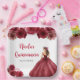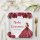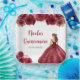 This Quinceanera plate features a beautiful princess in a burgundy red ball gown with floral arrangements. This is perfect for a sweet Quinceanera party.