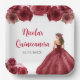 Floral Princess in Red Dress Quinceanera Paper Plate