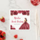 This sweet sixteen napkin features a beautiful princess in a burgundy red ball gown with floral arrangements. This is perfect for a sweet sixteen birthday party.