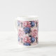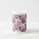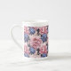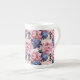 This bone China mug is shown with a lovely blue and pink peony floral print.