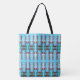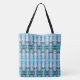 This cheerful floral print brightens up any day in the allover tote bag with adjustable strap. The design features pink and lavender flowers against a blue background. Perfect for shopping or on the go.