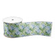 Satin ribbon is shown in a lovely blue hydrangea floral print.