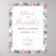 Elegant Purple Blush Pink Blue Floral Watercolor Botanical Foliage Bridal Shower Welcome Sign