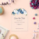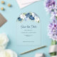 Elegant floral watercolor dusty blue, white, and navy floral bouquet wedding save the date with QR code card. The card features a script "Save the Date", that can be changed to a font type of your choice that are available here when you click the "Personalise" button. Add your wedding website and QR Code on the reverse side so your guests can keep up do date with your plans