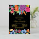 Floral Quinceanera and Mass Invitation with real gold foil typography and fiesta flowers. This bold and dramatic design has an abundance of colourful flowers, elegant script and modern typography. The watercolor illustration includes peony, rose, fuchsia, lily and greenery in shades of pink, purple, orange, yellow, green and blue. The template is set up ready for you to add details of the Church Ceremony and Reception. Please browse our store if you require the invitation without provision for Mass.