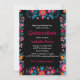 Floral Quinceanera Black Mexican Fiesta Birthday Invitation