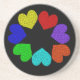 This fun fractal sandstone coaster features a digitally created image of a circle of love hearts. Each heart is a different colour of the rainbow. The red, orange, yellow, green, blue, indigo and violet hearts are a bright fun way of expressing your love for a boyfriend, girlfriend, husband or wife. The background is black to create maximum impact.