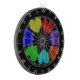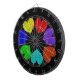 This awesome dart board features a digitally created image of a circle of love hearts. Each heart is a different colour of the rainbow. The red, orange, yellow, green, blue, indigo and violet hearts are a bright fun way of expressing your love for a boyfriend, girlfriend, husband or wife. The background is black to create maximum impact.
