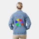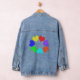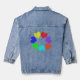 This awesome denim jacket features a digitally created image of a circle of love hearts. Each heart is a different colour of the rainbow. The red, orange, yellow, green, blue, indigo and violet hearts are a bright fun way of expressing your love for a boyfriend, girlfriend, husband or wife.