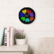 This awesome clock features a digitally created image of a circle of love hearts. Each heart is a different colour of the rainbow. The red, orange, yellow, green, blue, indigo and violet hearts are a bright fun way of expressing your love for a boyfriend, girlfriend, husband or wife. The background is black to create maximum impact.